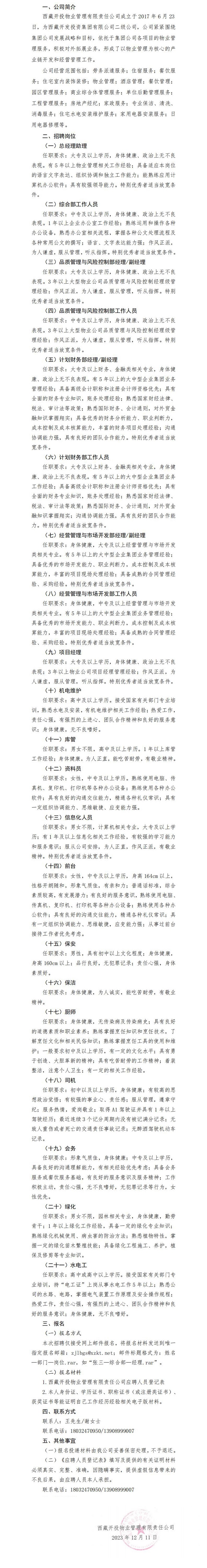西藏開發(fā)投資集團(tuán)有限公司2023年社會招聘公告