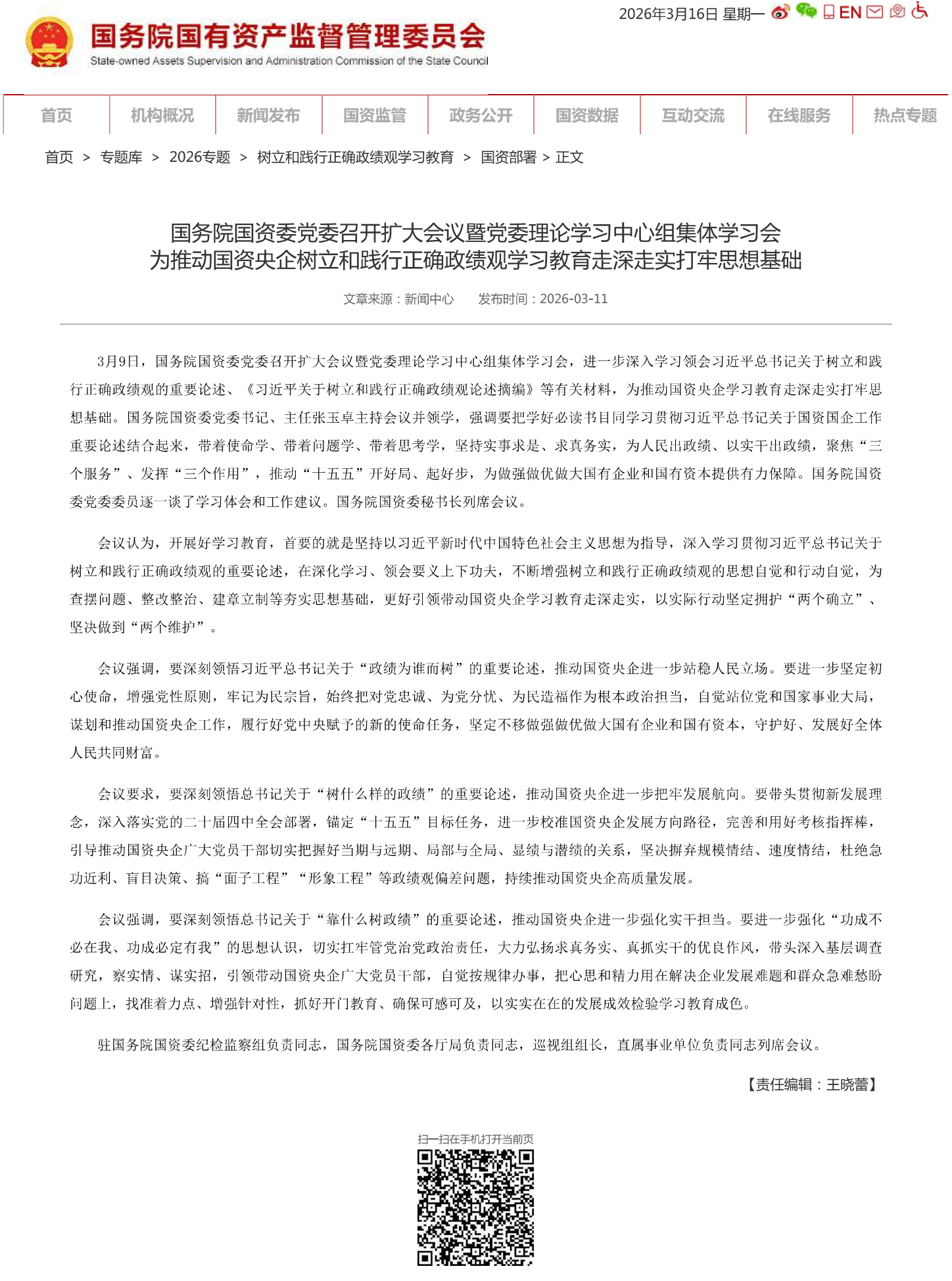 國務院國資委黨委召開擴大會議暨黨委理論學習中心組集體學習會為推動國資央企樹立和踐行正確政績觀學習教育走深走實打牢思想基礎