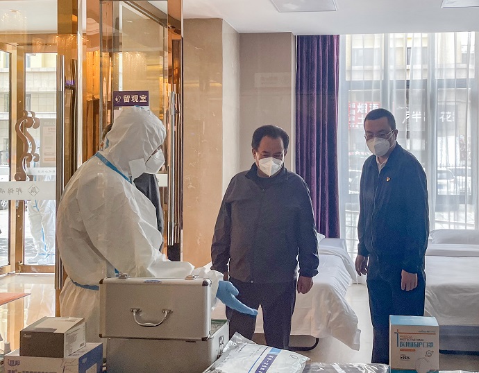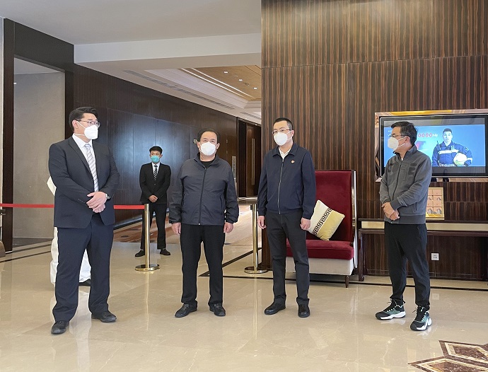 多吉次珠一行詳細(xì)察看了西藏開(kāi)投邦錦花園酒店出入登記點(diǎn)、留觀(guān)室、疫情防控物資儲(chǔ)備室、全日制餐廳等區(qū)域,聽(tīng)取了酒店疫情防控工作匯報(bào)。聽(tīng)取匯報(bào)后,多吉次珠對(duì)酒店全力做好一線(xiàn)抗疫醫(yī)務(wù)工作者和公安民警后勤保障工作給予高度評(píng)價(jià)。他指出,西藏開(kāi)投邦錦花園酒店站位高、有擔(dān)當(dāng),主動(dòng)承擔(dān)抗疫一線(xiàn)干部職工保障工作重要任務(wù),充分彰顯了國(guó)企擔(dān)當(dāng)、國(guó)企速度、國(guó)企精神,有力發(fā)揮了國(guó)資國(guó)企的“頂梁柱”作用。
