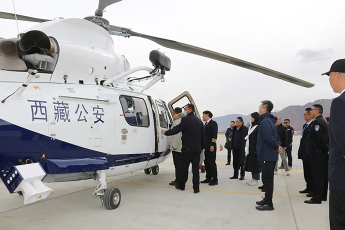 近日,公安部警務(wù)飛行處處長梁宏濤率隊(duì)赴西藏應(yīng)急救援基地實(shí)地考察調(diào)研。西藏開發(fā)投資集團(tuán)有限公司黨委書記、董事長、西藏民航發(fā)展投資有限公司董事長祁騰武,區(qū)公安廳、區(qū)發(fā)展改革委、西藏通航公司有關(guān)同志陪同調(diào)研。