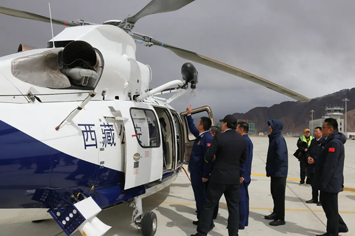 祁騰武指出,西藏各類(lèi)自然災(zāi)害多發(fā)頻發(fā),消防應(yīng)急救援任務(wù)繁重,要堅(jiān)決貫徹落實(shí)黨中央和區(qū)黨委政府關(guān)于消防救援和通航產(chǎn)業(yè)發(fā)展的決策部署,堅(jiān)持人民至上、生命至上,聚焦穩(wěn)定、發(fā)展、生態(tài)、強(qiáng)邊“四件大事”,提高政治站位,立足職能定位,全力服務(wù)保障我區(qū)全任務(wù)、全地域、全要素應(yīng)急救援任務(wù)開(kāi)展。一是要確保安全。消防應(yīng)急救援的專(zhuān)業(yè)性很強(qiáng)、危險(xiǎn)系數(shù)也很高,要樹(shù)牢安全發(fā)展理念,增強(qiáng)紅線意識(shí),堅(jiān)持底線思維,落實(shí)好安全生產(chǎn)責(zé)任制,強(qiáng)化設(shè)備安全性能測(cè)試,常態(tài)化開(kāi)展融合訓(xùn)練,確保救援裝備安全運(yùn)行。二是要深化合作。要立足航空消防救援方向,加強(qiáng)與自治區(qū)消防救援總隊(duì)、設(shè)備生產(chǎn)制造企業(yè)、科研機(jī)構(gòu)的深度合作,統(tǒng)籌資源力量,創(chuàng)新工作模式,做好經(jīng)驗(yàn)總結(jié)推廣,力爭(zhēng)把不斷涌現(xiàn)的應(yīng)急救援新技術(shù)、新裝備運(yùn)用到全區(qū)應(yīng)急救援各領(lǐng)域。三是要加快落地。AC312E消防救援型直升機(jī)的引進(jìn)使用,區(qū)黨委政府高度關(guān)注,各族群眾翹首以盼,合作各方要積極對(duì)接、共同努力,科學(xué)謀劃預(yù)算編報(bào)、需求論證、裝備采購(gòu)、國(guó)家航空器報(bào)備各項(xiàng)工作,確保盡早交付運(yùn)行、盡早發(fā)揮效能,切實(shí)為維護(hù)全區(qū)各族人民群眾生命財(cái)產(chǎn)安全和經(jīng)濟(jì)社會(huì)高質(zhì)量發(fā)展保駕護(hù)航。