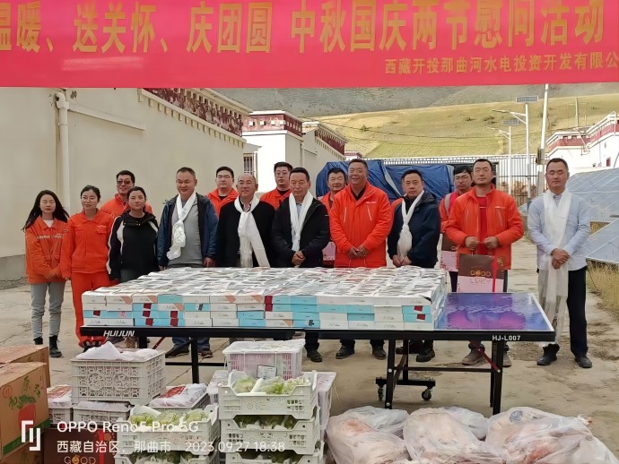 9月27日,西藏開(kāi)投那曲河水電開(kāi)發(fā)投資有限公司組織開(kāi)展送溫暖、送關(guān)懷、慶團(tuán)圓中秋國(guó)慶兩節(jié)慰問(wèn)活動(dòng),集團(tuán)公司副總經(jīng)理尼瑪出席活動(dòng),那曲河公司總經(jīng)理何驍及其它相關(guān)人員參加。