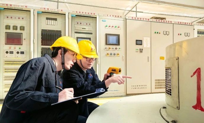 “值長是安全生產(chǎn)的第一責(zé)任人,這根弦必須時刻繃緊。”楊勇師傅的話始終回響在耳邊。作為經(jīng)驗豐富的老師傅,他為徒弟巴桑制定了循序漸進的培養(yǎng)計劃——從最基礎(chǔ)的設(shè)備銘牌識讀到復(fù)雜的系統(tǒng)結(jié)構(gòu)圖紙分析,從常規(guī)的監(jiān)盤、巡檢到關(guān)鍵的倒閘操作、定期維護,每一步都扎實而清晰。“設(shè)備會‘說話’,”楊勇強調(diào)。他所傳授的“感官診斷”法,讓巴桑學(xué)會傾聽機組運行的細微異響、感知軸承的溫度變化、捕捉設(shè)備的每一處異常。在多次協(xié)同處置設(shè)備波動的實戰(zhàn)中,楊勇逐步引導(dǎo),幫助巴桑理解故障邏輯、掌握應(yīng)急流程。“師傅不僅教技術(shù),更教會我如何負起責(zé)任。”巴桑說。這份嚴謹與傳承,正逐漸內(nèi)化為新一代水電人的職業(yè)底色。