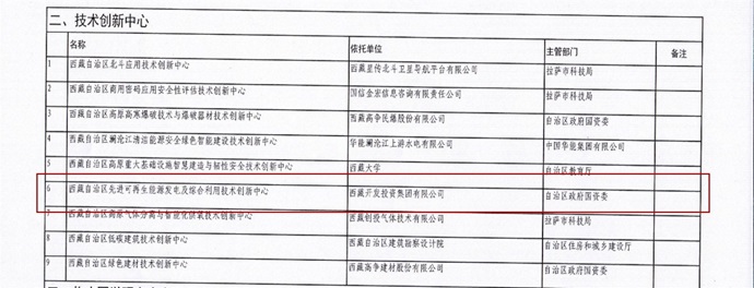 集團公司申報的“西藏自治區(qū)先進可再生能源發(fā)電及綜合利用技術(shù)創(chuàng)新中心”成功批準籌建