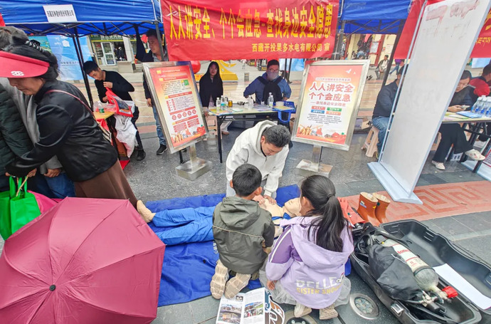 6月16日,西藏開投果多水電公司積極響應(yīng)昌都市安全生產(chǎn)委員會(huì)辦公室及昌都市應(yīng)急管理局邀請,參加昌都市“人人講安全、個(gè)個(gè)會(huì)應(yīng)急——查找身邊安全隱患”為主題的安全宣傳咨詢?nèi)栈顒?dòng)。活動(dòng)現(xiàn)場,果多水電公司向市民發(fā)放了安全用電手冊,積極普及安全用電知識,現(xiàn)場講解了各電壓等級驗(yàn)電棒、三相短路接地線、高壓拉閘桿及正壓式空氣呼吸器、五點(diǎn)式安全帶等多種安全設(shè)備相關(guān)知識,并開展了心肺復(fù)蘇模擬器實(shí)操演示,吸引了眾多市民駐足觀摩,部分市民還積極參與了心肺復(fù)蘇模擬實(shí)操。