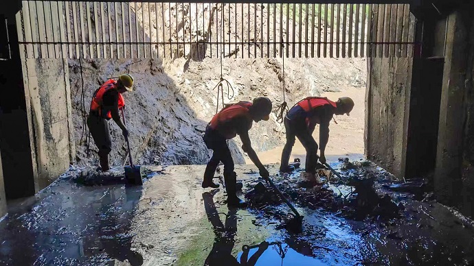(新榮電站攔污柵清潔 王曉輝攝)