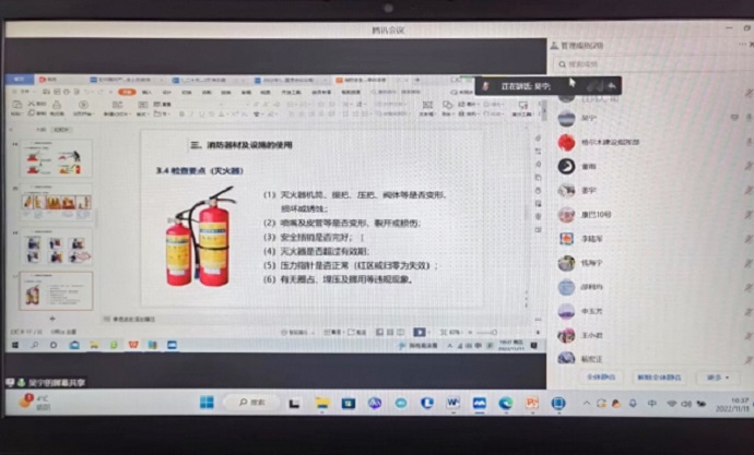 11月11日,油氣管道分公司組織開展消防安全知識線上專題學習會。會議傳達學習了西藏自治區(qū)國資委關于轉(zhuǎn)發(fā)《2022年“119”消防宣傳月活動方案》的通知和《消防安全基礎知識培訓手冊》,觀看了《2022年近期住宅小區(qū)消防安全警示片》。