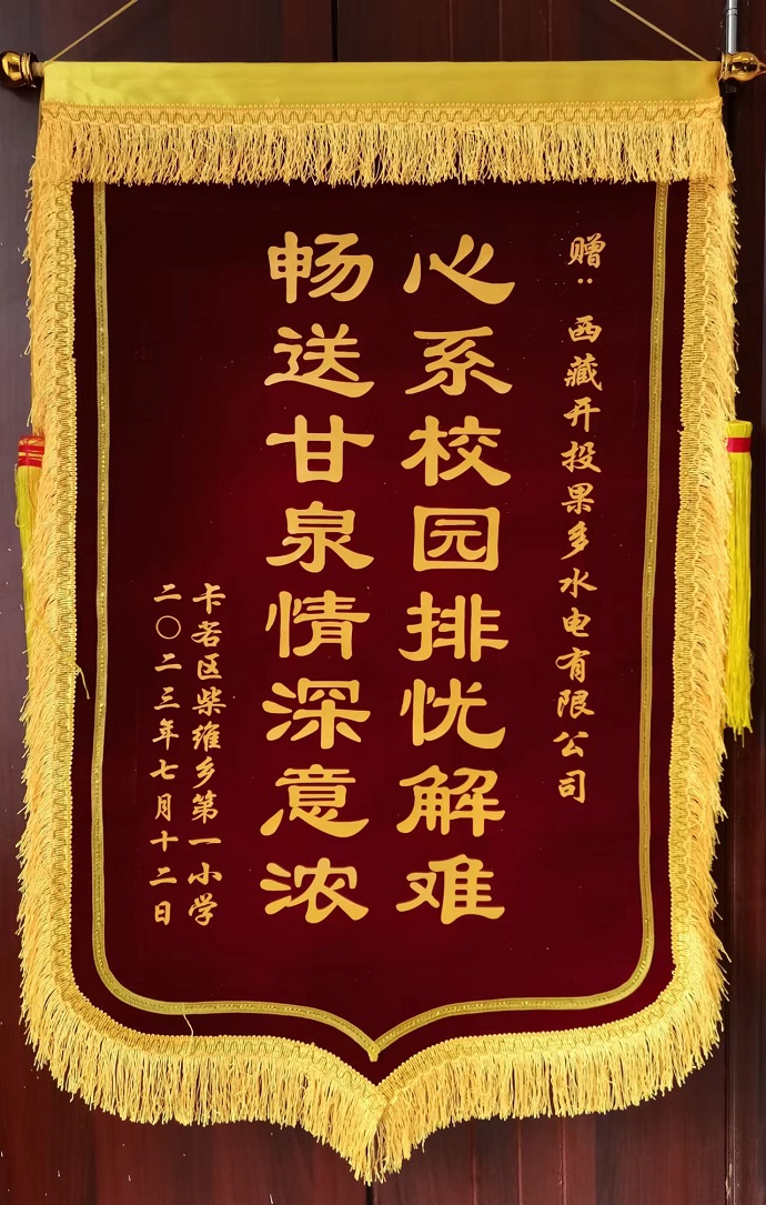 捐贈(zèng)現(xiàn)場(chǎng),果多水電公司董事長(zhǎng)、總經(jīng)理宋亞東與校長(zhǎng)李松林親切交流,了解孩子們學(xué)習(xí)、生活情況,鼓勵(lì)孩子們要好好學(xué)習(xí),保持樂觀向上的心態(tài),健康快樂成長(zhǎng)。作為受助方,李松林向果多水電公司贈(zèng)送“心系校園排憂解難 暢送甘泉情深意濃”錦旗以表謝意。他表示,愛心無價(jià),情誼永恒,全校師生將把這份關(guān)愛化作砥礪前行的動(dòng)力,努力提高柴維鄉(xiāng)教育教學(xué)質(zhì)量,培養(yǎng)出德、智、體、美、勞全面發(fā)展的新時(shí)代好少年。
