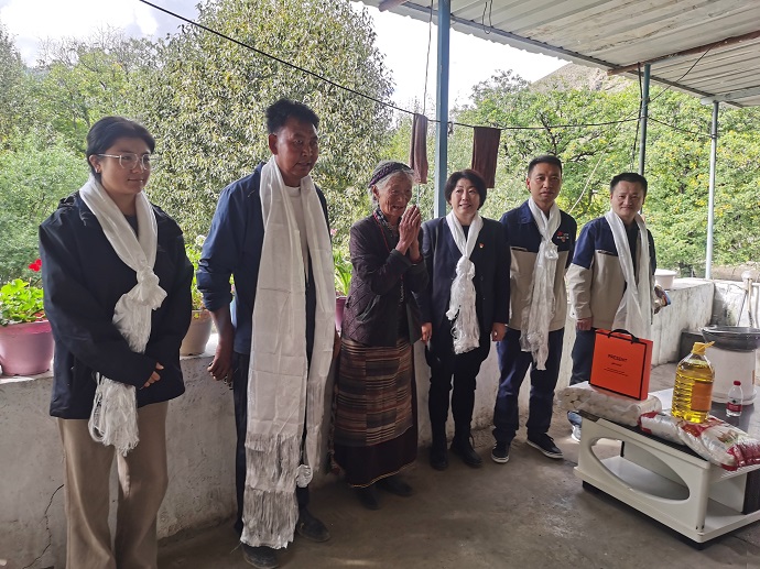 在活動(dòng)中,嘎堆水電公司慰問了3戶嘎堆村的低保戶及五保戶。每到一戶,慰問組都會(huì)與老人促膝談心,細(xì)致了解他們的健康和生活狀況,鼓勵(lì)他們樹立信心,樂觀生活,積極克服困難。