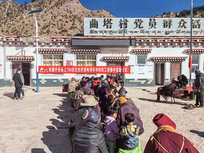 12月21日,西藏開投金上光伏能源有限公司舉行農(nóng)牧民工資發(fā)放儀式,為昂多鄉(xiāng)曲塔村農(nóng)牧民185人發(fā)放工資報酬近243萬元。