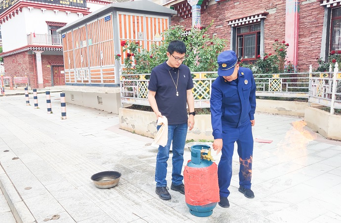 (液化氣火災(zāi)應(yīng)急處理實(shí)操 李瑞峰攝)