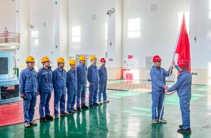 成立機(jī)組檢修黨員突擊隊(duì)并舉行授旗儀式。劉俊 攝