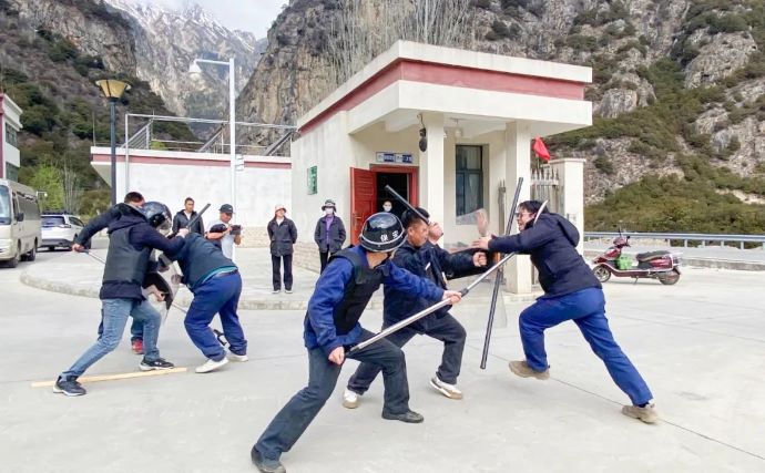 4月10日,西藏開(kāi)投金橋水電公司聯(lián)合屬地公安部門(mén)開(kāi)展群體性治安事件實(shí)戰(zhàn)演練。