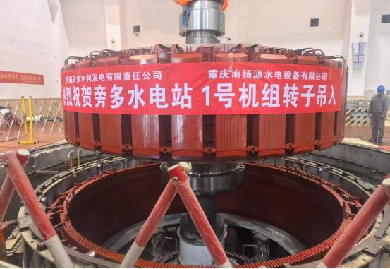 轉(zhuǎn)子吊入機(jī)坑上方瞬間 才仁多杰攝