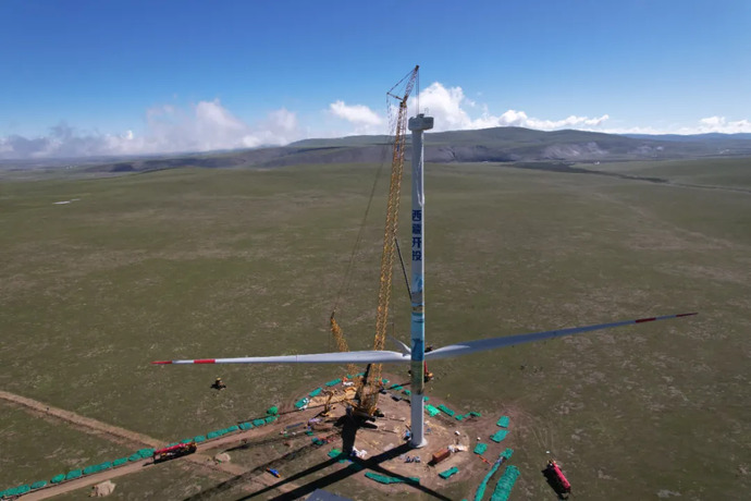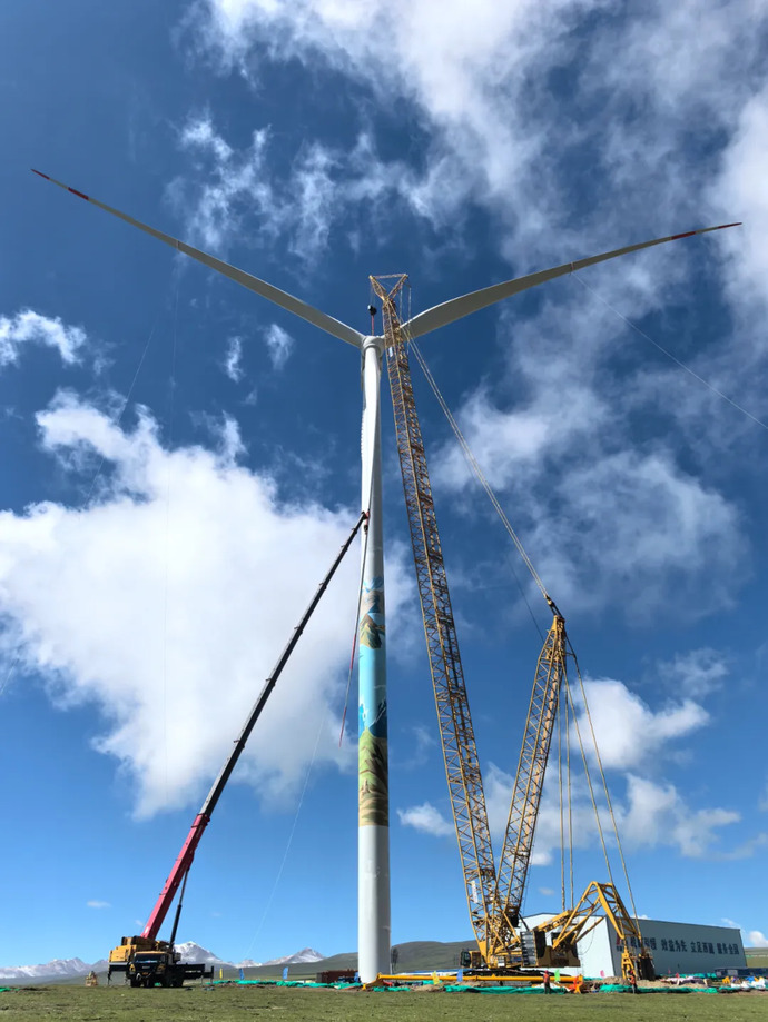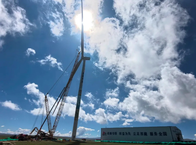 西藏在建最大風電項目完成首臺風力發(fā)電機組吊裝