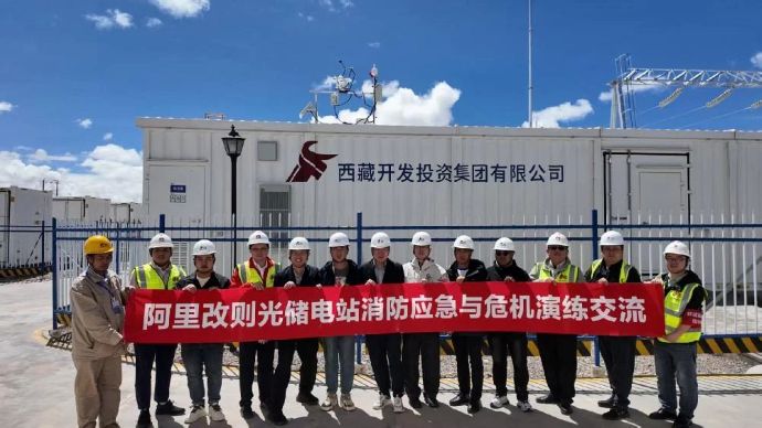 近日,西藏開投阿里清潔能源公司在集團(tuán)專家指導(dǎo)下,聯(lián)合改則縣應(yīng)急管理局、華為數(shù)字能源公司,在改則光儲電站開展了電化學(xué)儲能電池倉事故應(yīng)急演練。
