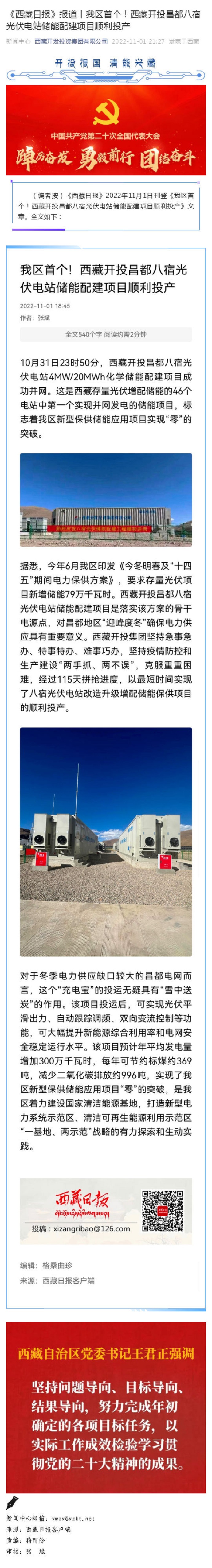 《西藏日報》報道丨我區(qū)首個!西藏開投昌都八宿光伏電站儲能配建項目順利投產(chǎn)