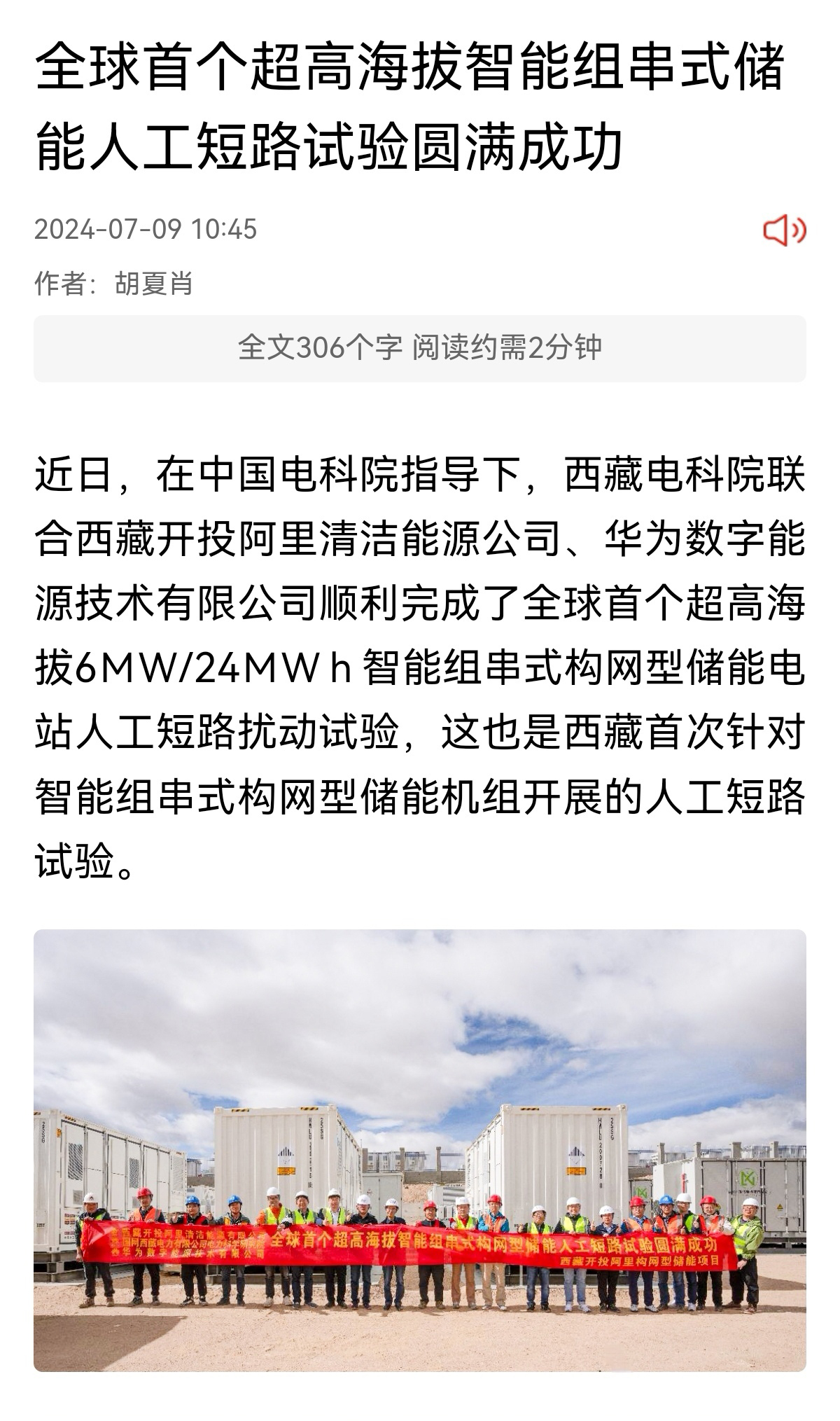 媒體報道丨全球首個超高海拔智能組串式儲能人工短路試驗(yàn)圓滿成功