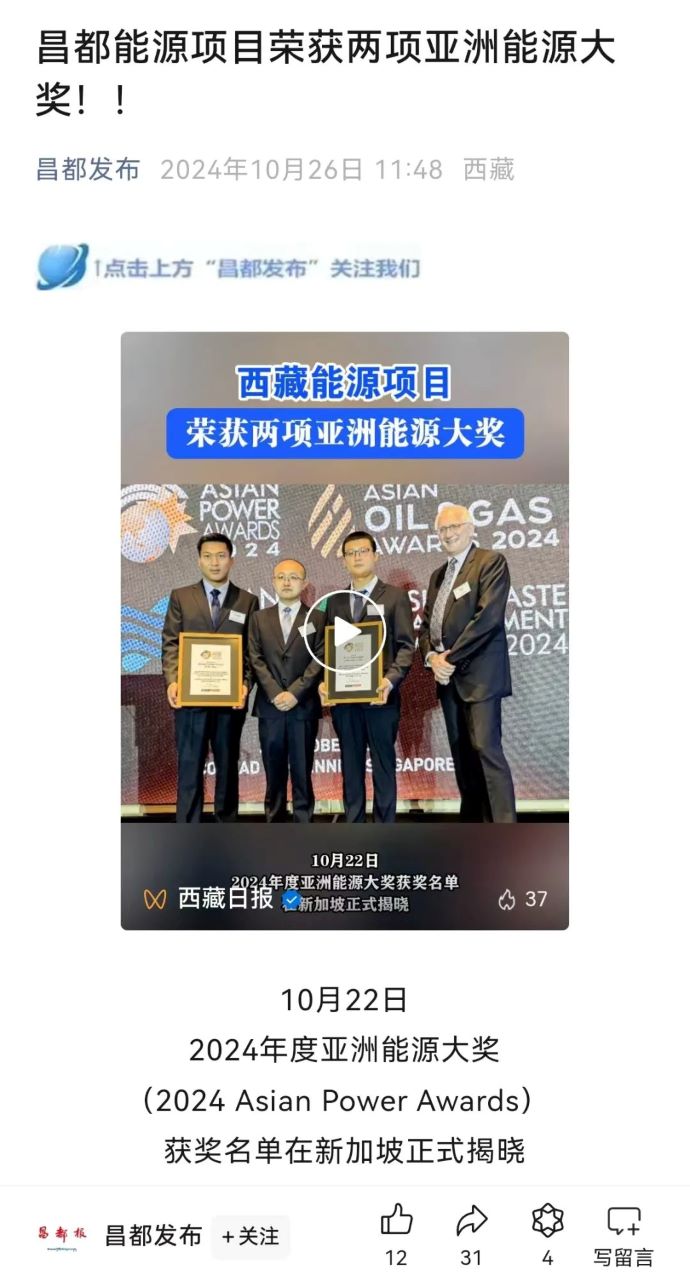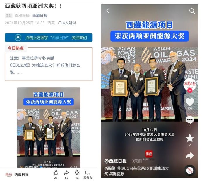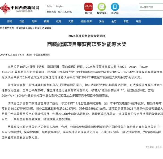 媒體報道丨西藏能源項目榮獲兩項亞洲能源大獎