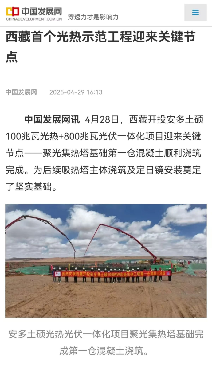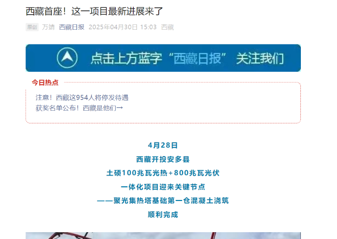 媒體報道丨西藏首個光熱示范工程迎來關(guān)鍵節(jié)點(diǎn)