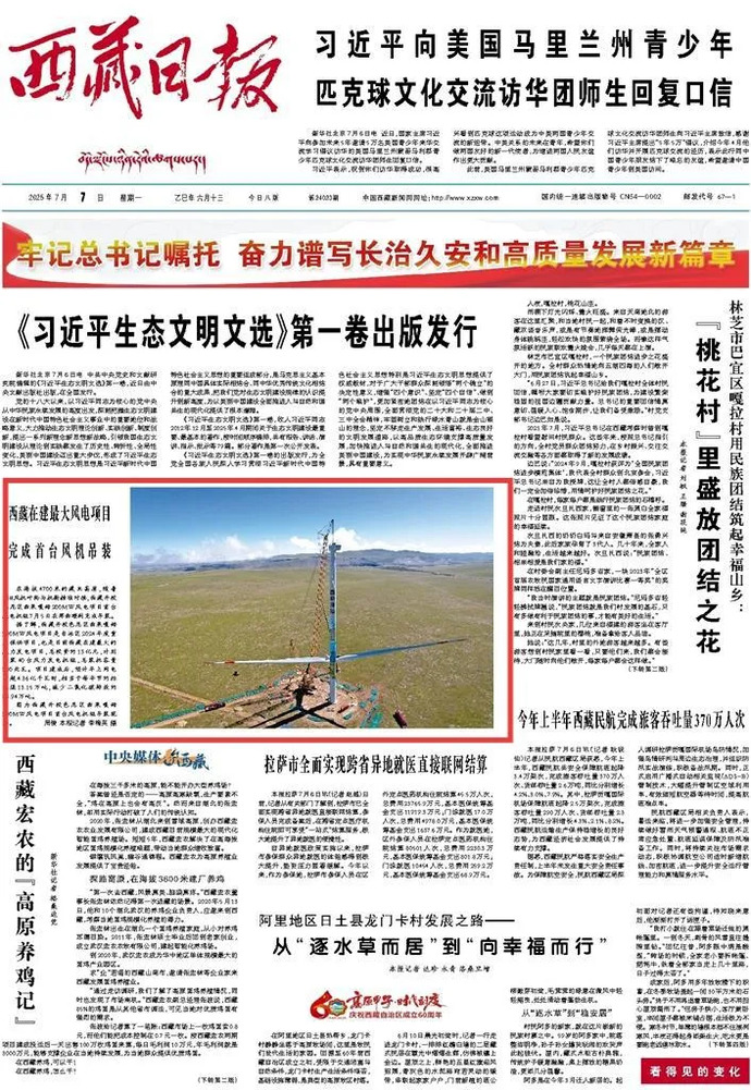 媒體報道丨西藏在建最大風電項目完成首臺風力發(fā)電機組吊裝