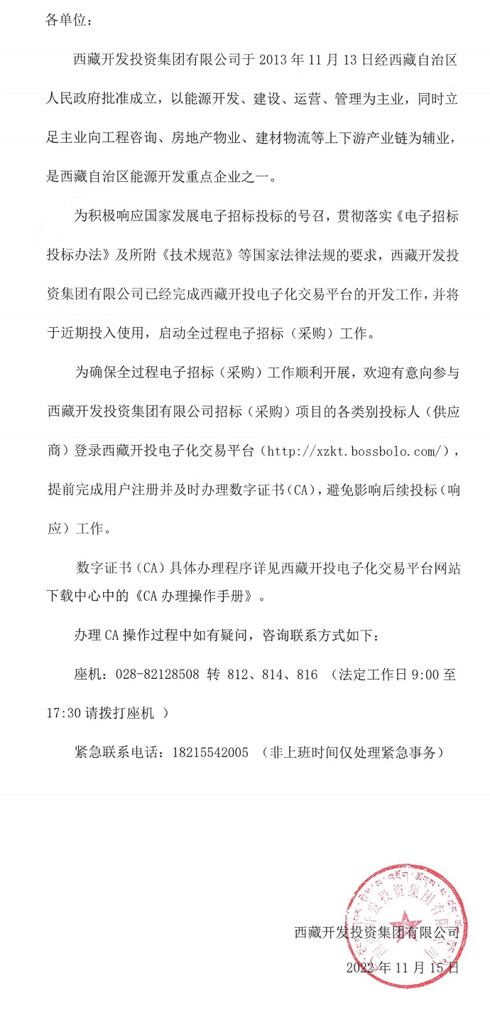 關于辦理西藏開投電子化交易平臺