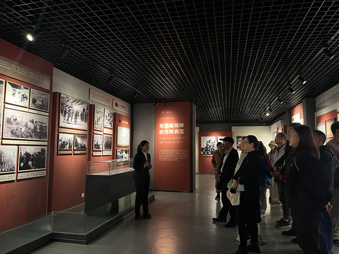 在講解員引導(dǎo)下,大家參觀了由“一生奉獻(xiàn)給黨的事業(yè)”“老西藏精神的光輝典范”“紅色基因代代相傳”三個單元組成的陳列展,認(rèn)真聆聽了“從參加革命到解放西南、和平解放時期、在執(zhí)行協(xié)議的八年歲月、重返西藏、永不褪色的老西藏精神”等反映譚冠三將軍一生和西藏各族各界人士傳承老西藏精神的故事。