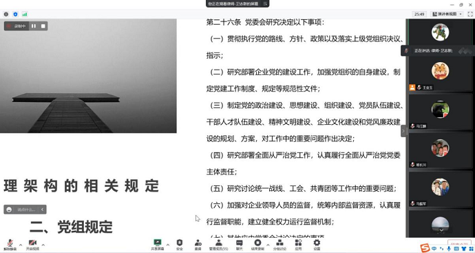 培訓(xùn)圍繞集團(tuán)公司章程規(guī)定、部門職責(zé)、三重一大規(guī)定三個(gè)方面作了系統(tǒng)講解,著重從合法、合規(guī)性方面進(jìn)行了分析。此次培訓(xùn),有效促進(jìn)了制度建設(shè)工作的法治化和規(guī)范化。下一步,集團(tuán)公司將結(jié)合上級(jí)要求,持續(xù)加強(qiáng)制度管理體系的建設(shè),優(yōu)化管理流程,筑牢集團(tuán)公司高質(zhì)量發(fā)展基石。