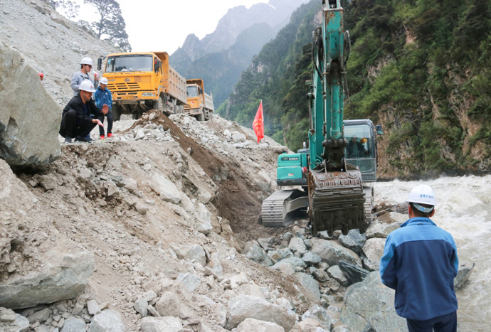 截至7月8日12時,地方政府和我公司及各參建單位共組織投入裝載機、挖掘機、工程車等機具200多臺次,投工投勞800余人次。在地方政府的大力支持下、在金橋支部黨員突擊隊的帶動下、在所有搶修人員的共同努力下,嘉黎縣至金橋水電站公路已基本搶通,電站建設(shè)的物資陸續(xù)運至現(xiàn)場,當(dāng)?shù)厝罕娚钴囕v緩慢通過,沿途經(jīng)過的貨運車輛、越野車輛紛紛減速鳴笛向飄揚的共產(chǎn)黨員突擊隊隊旗致敬,向所有參與搶修公路的人員致謝。