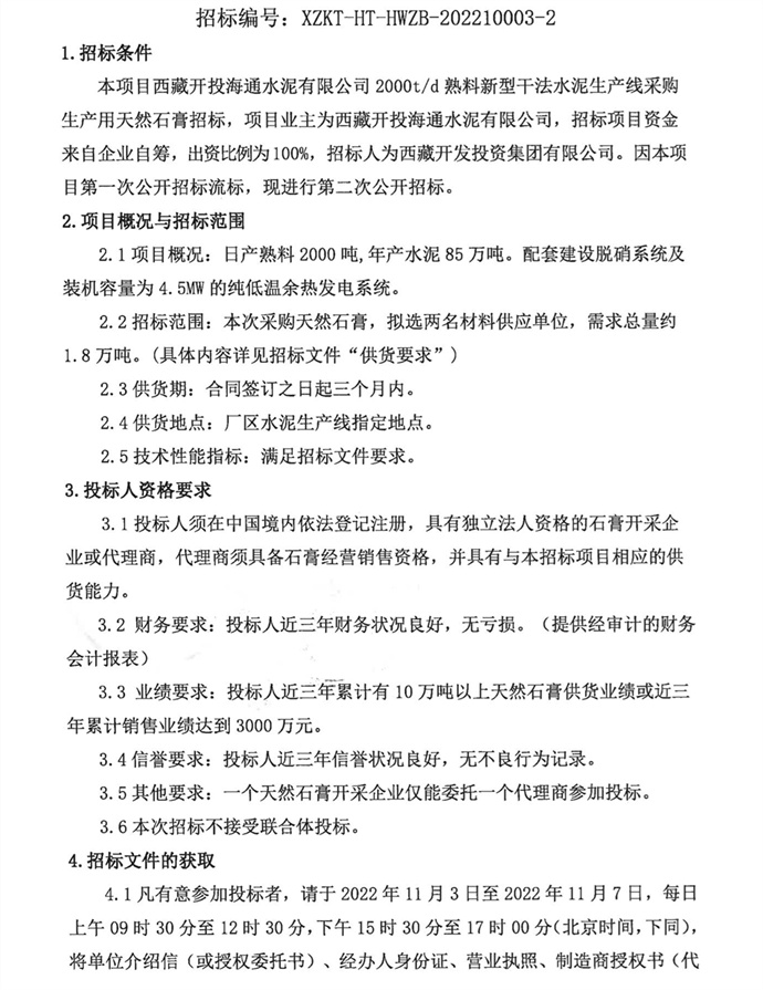 采購生產用天然石膏二次招標公告