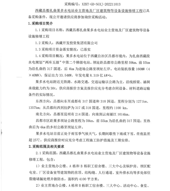 西藏昌都扎曲果多水電站業(yè)主營地及廠區(qū)建筑物等設(shè)備設(shè)施