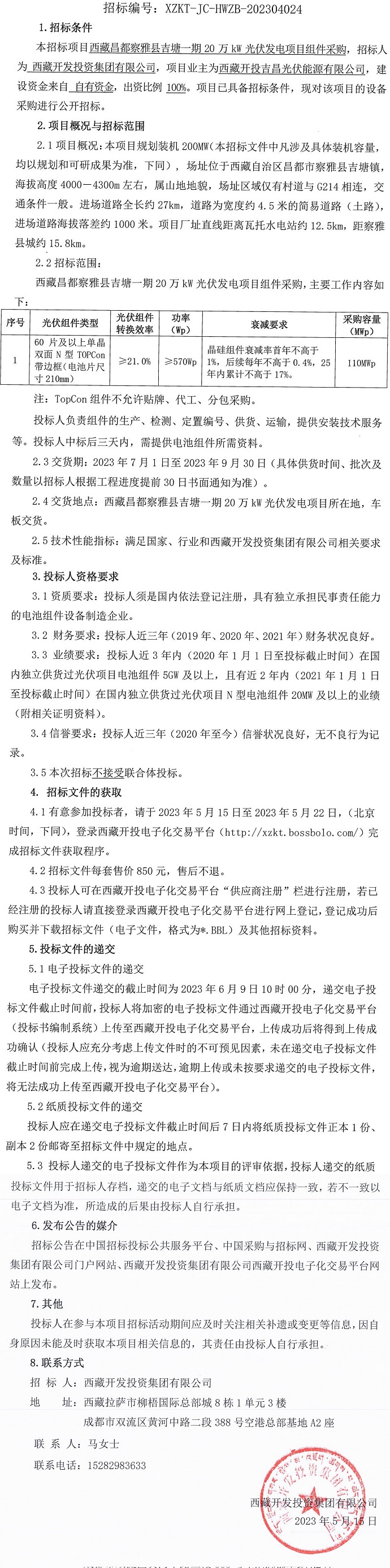 西藏昌都察雅縣吉塘一期20萬kW光伏發(fā)電項(xiàng)目組件采購(gòu)招標(biāo)公告