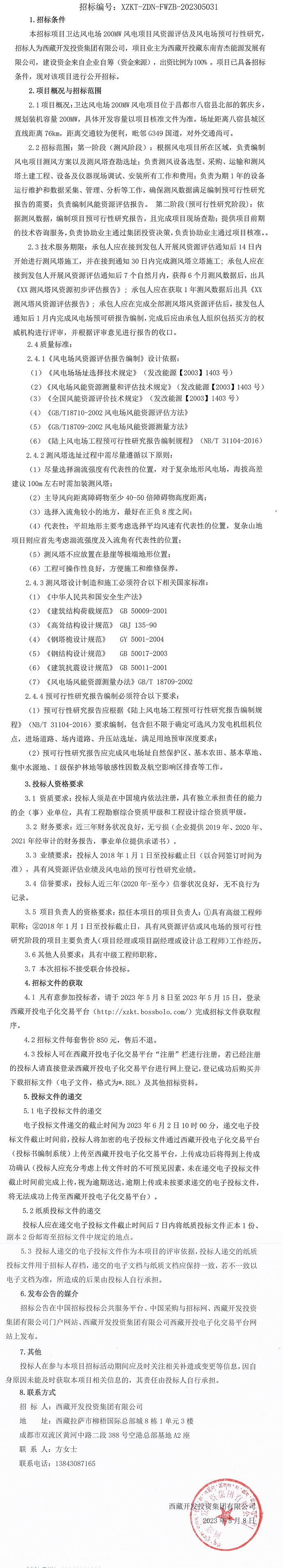衛(wèi)達(dá)風(fēng)電場(chǎng)200MW風(fēng)電項(xiàng)目風(fēng)資源評(píng)估及風(fēng)電場(chǎng)預(yù)可行性研究招標(biāo)公告