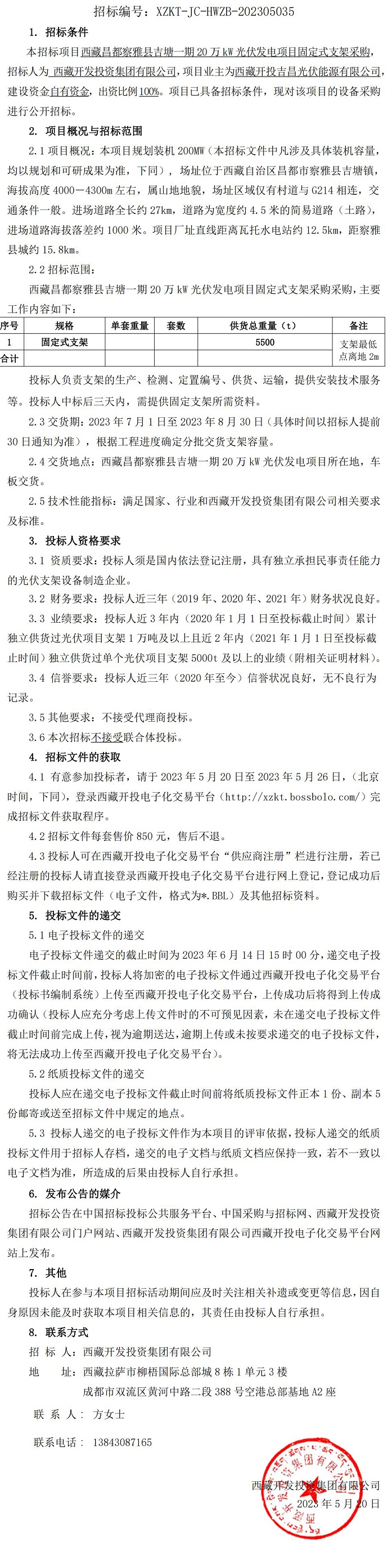 固定式支架采購招標(biāo)公告