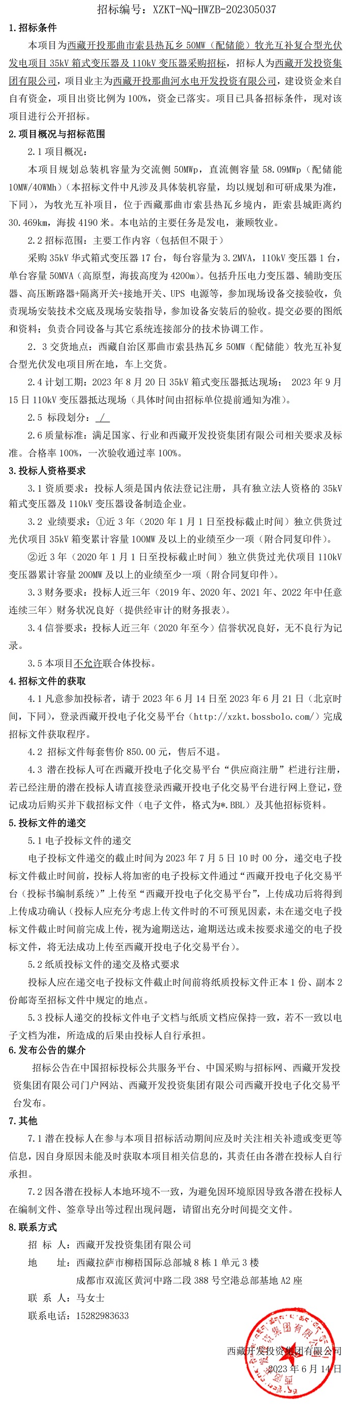 35kV箱式變壓器及110kV變壓器采購招標公告