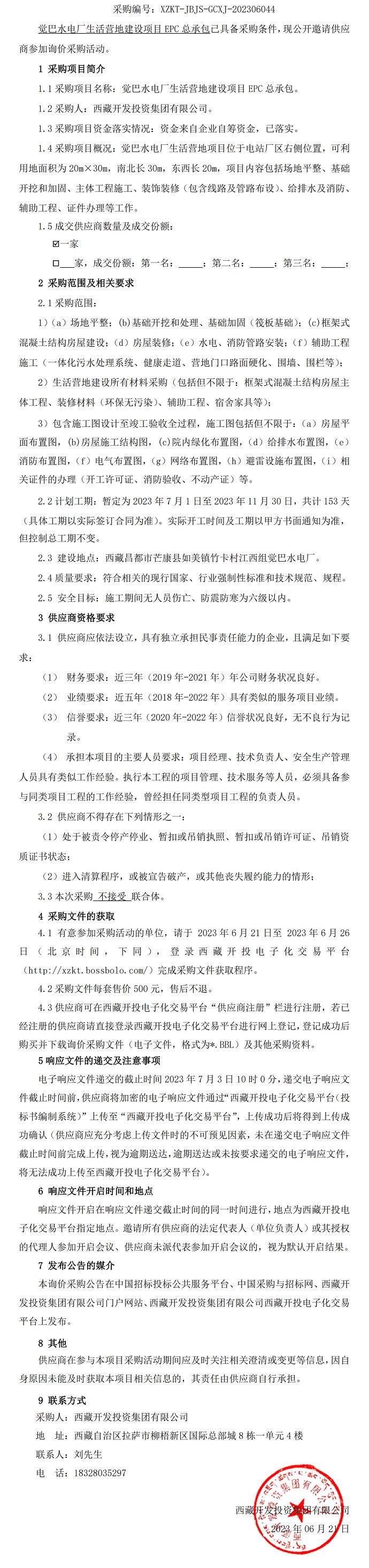 覺巴水電廠生活營地建設(shè)項目EPC總承包詢價采購公告