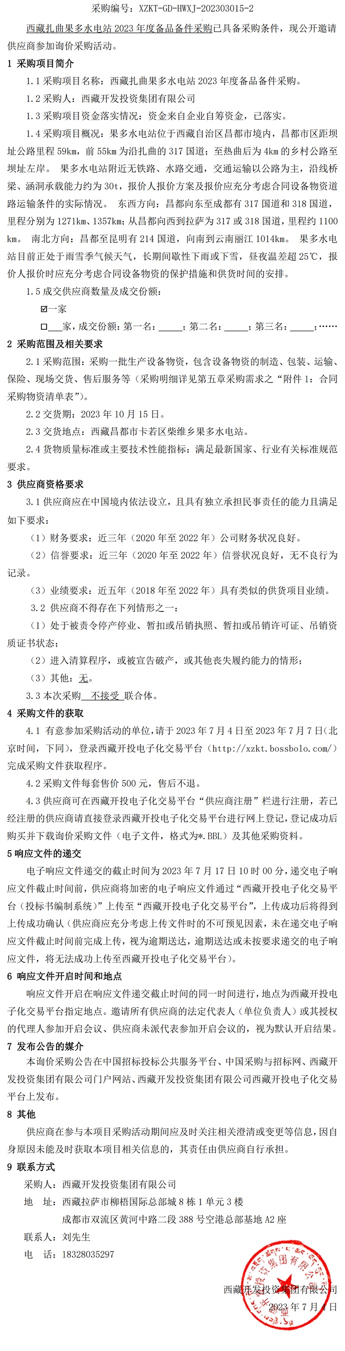 西藏扎曲果多水電站2023年度備品備件