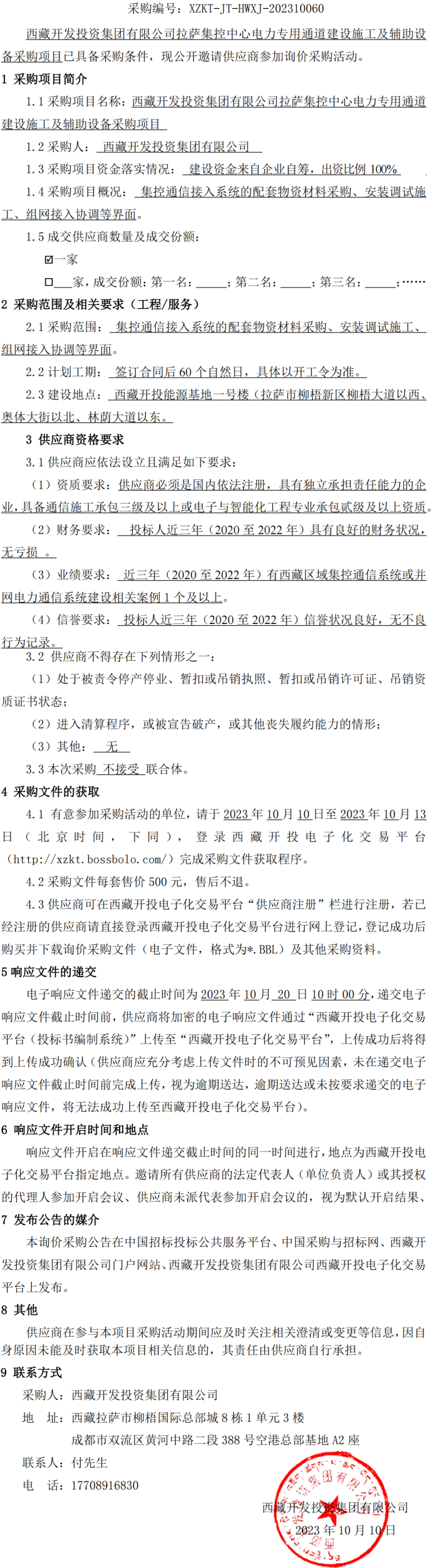 西藏開發(fā)投資集團(tuán)有限公司拉薩集控中心電力專用通道