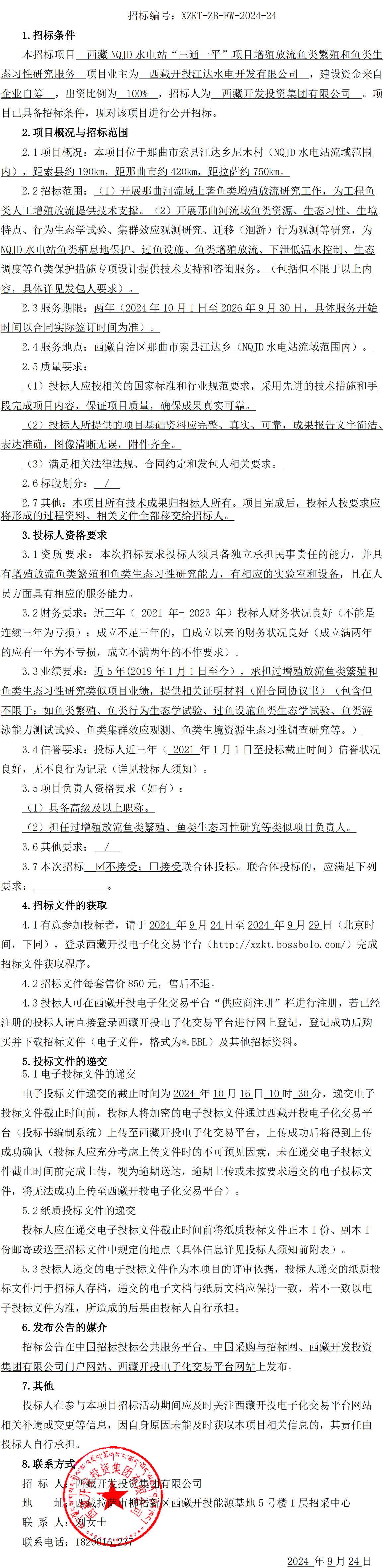西藏 NQJD 水電站“三通一平”項(xiàng)目增殖放流魚(yú)類(lèi)繁殖和魚(yú)類(lèi)生態(tài)習(xí)性研究服務(wù)招標(biāo)公告