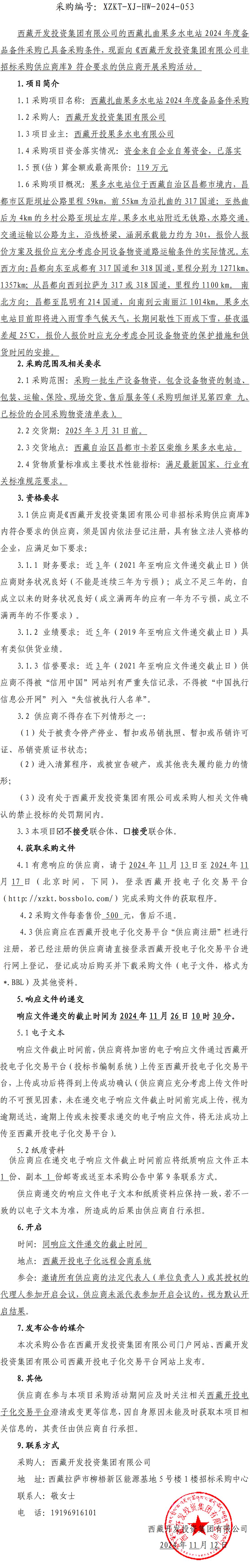 西藏扎曲果多水電站 2024 年度備品備件采購(gòu)詢(xún)價(jià)采購(gòu)公告