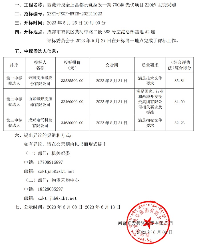 中標(biāo)候選人公示