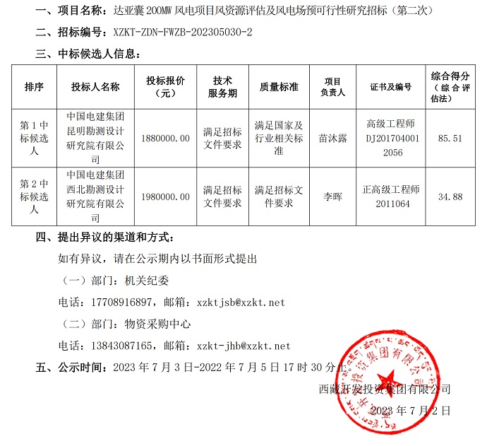 中標候選人公示
