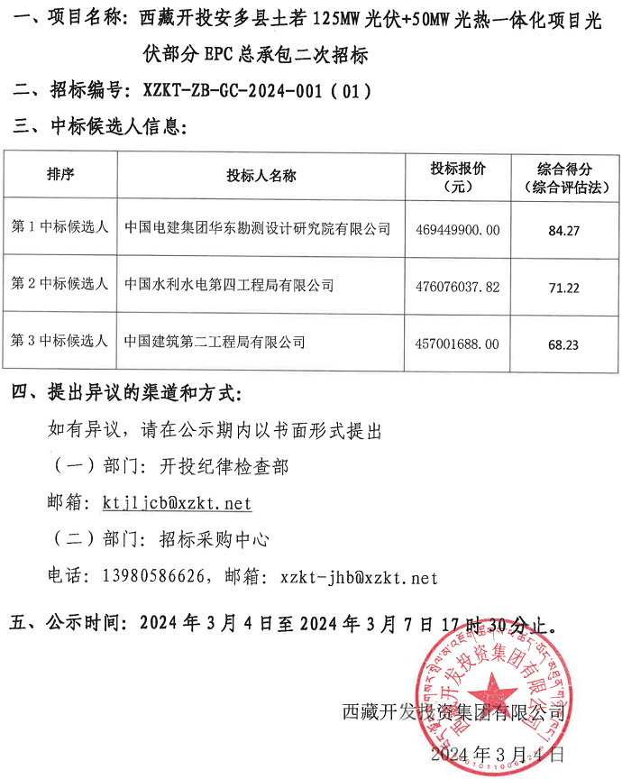中標(biāo)候選人公示