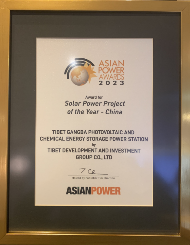 11月8日晚,在馬來(lái)西亞首都吉隆坡舉行的“2023年亞洲電力獎(jiǎng)”頒獎(jiǎng)大會(huì)上,西藏開(kāi)發(fā)投資集團(tuán)有限公司崗巴光伏光熱發(fā)電分公司從眾多入圍的優(yōu)秀電力企業(yè)中脫穎而出,斬獲“2023年亞洲電力獎(jiǎng)——年度最佳太陽(yáng)能發(fā)電項(xiàng)目獎(jiǎng)和亞太區(qū)年度電池存儲(chǔ)項(xiàng)目-銅獎(jiǎng)”,成為同年度中國(guó)唯一一家獲得二個(gè)獎(jiǎng)項(xiàng)的發(fā)電企業(yè)。